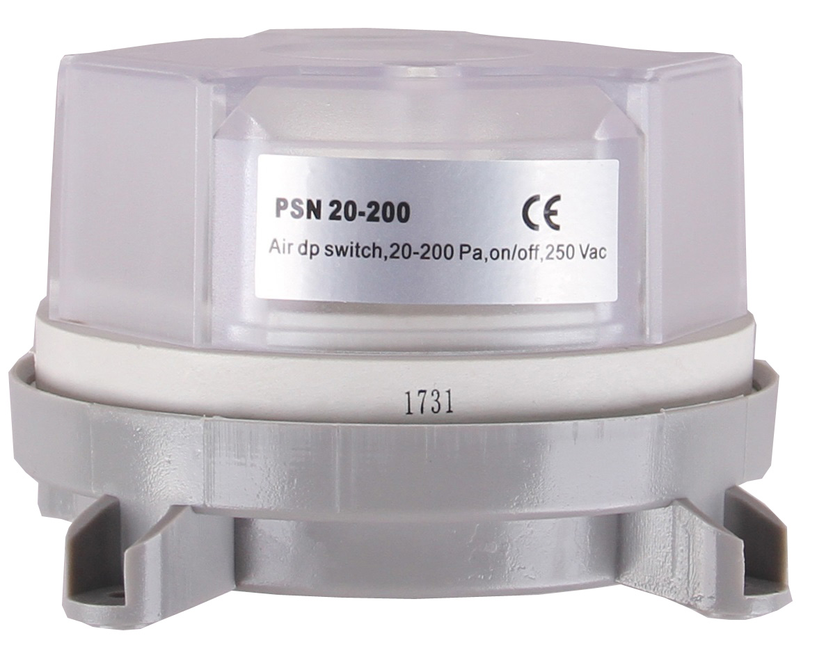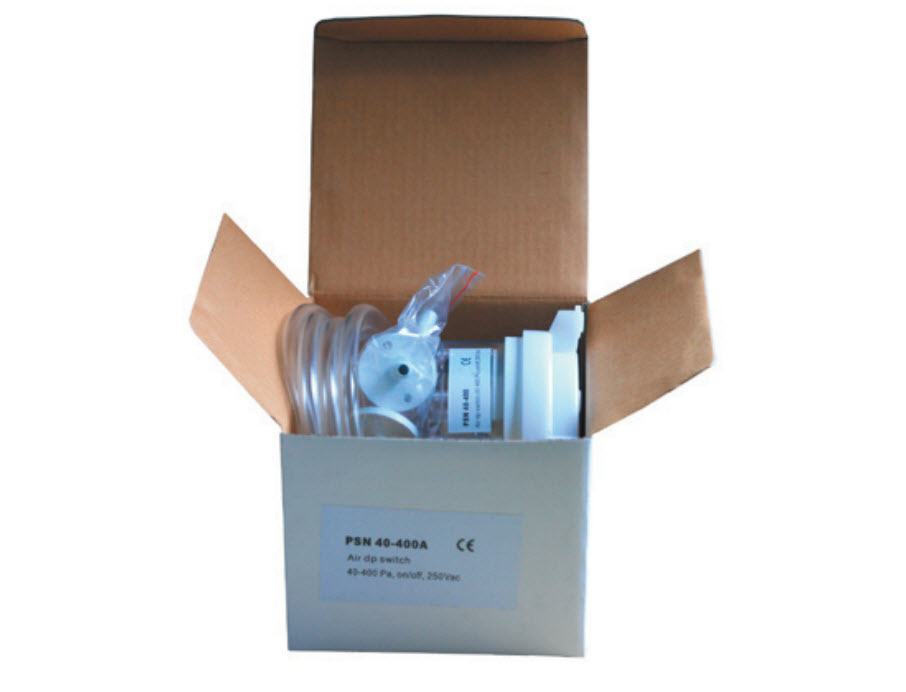 PSN40-400A differential pressure switch is used for fan status and dirty filter applications. A knob with pressure values on it allows the setpoint to be adjusted visually in the field. The plastic duct probe tubes, flexible silicon tubing and the mounting screws are included with all models.