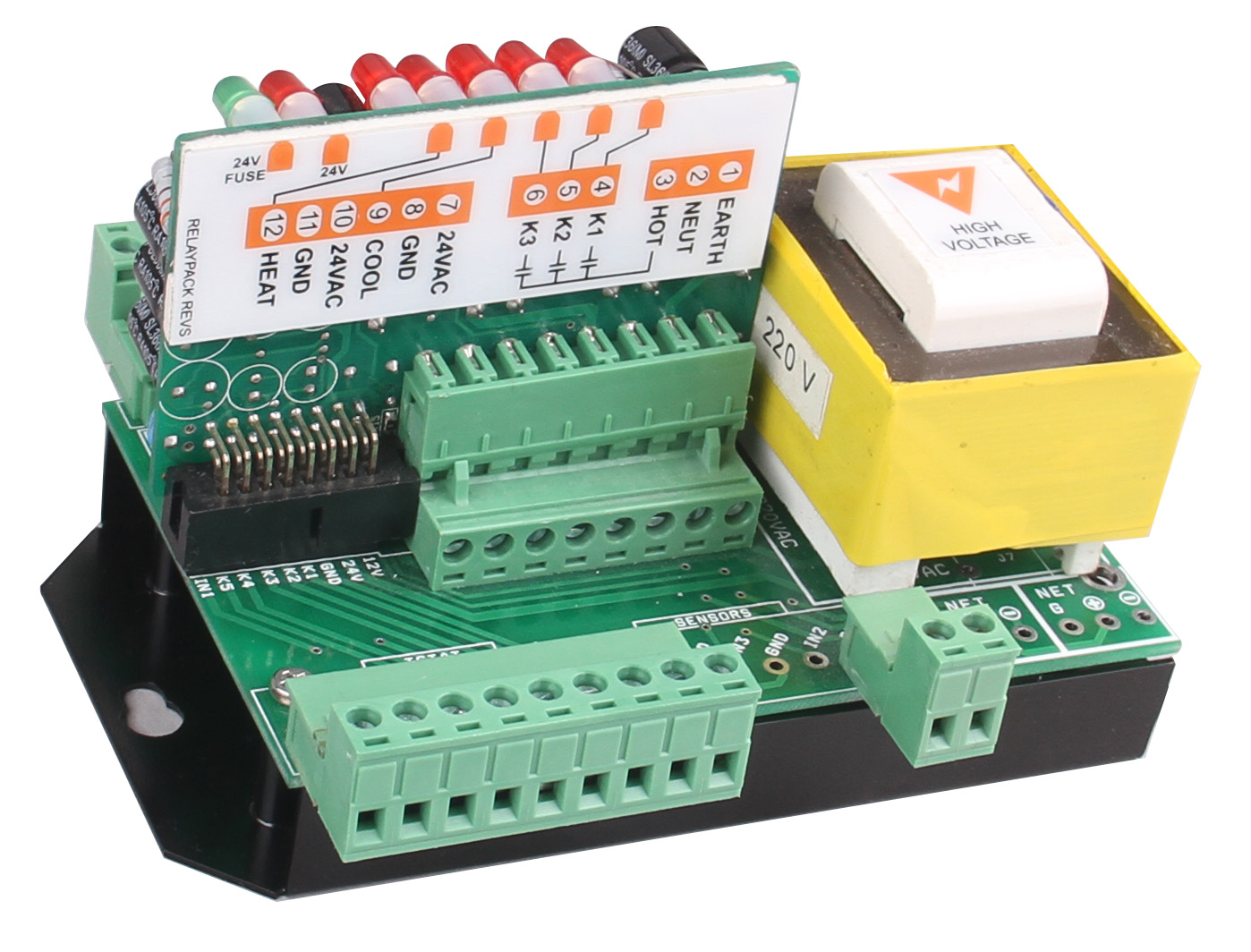 This versatile Relay Board and Transformer setup delivers reliable performance with low-power coils. It features high-rated relays and convenient labeling options for easy customization. With transformer and non-transformer versions available, it offers flexibility for different control needs. Status LEDs and a durable plastic enclosure ensure reliable, efficient performance in various applications