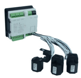 You can easily install this three phase power meter by clamping the three Rogowski coils over existing power cables without disconnecting them. The ME237 supports three-phase three wire and three-phase four wire systems. It provides current, voltage, power factor, reactive & active power, phase angle and other electrical parameters for all three phases. The data is available over the RS485 network port using Modbus RTU protocol.
