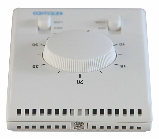 Line/Low voltage thermostat, large dial, fits on 11-10 electrical box