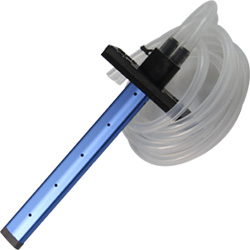 The pitot tube is used for measuring air flow in ducts. It produces a small differential pressure which varies with the velocity of the air. This pitot tube has multiple ports along the length of the pitot which produce an average of the air speed in the duct.